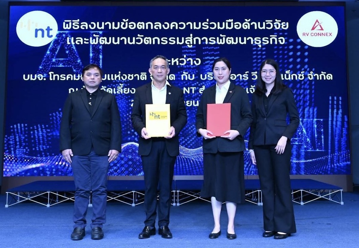 NT กับ บริษัท อาร์ วี คอนเน็กซ์ จำกัด (อาร์วี คอนเน็กซ์) ร่วมลงนามบันทึกข้อตกลงความร่วมมือร่วมวิจัยและพัฒนานวัตกรรมระบบบูรณการ CCTV ด้วยเทคโนโลยีปัญญาประดิษฐ์ขั้นสูง และมีแนวทางความเป็นไปได้ในการพัฒนาธุรกิจต่อยอดขององค์กร โดยมี พันเอก สรรพชัยย์ หุวะนันทน์ กรรมการผู้จัดการใหญ่ บริษัท โทรคมนาคมแห่งชาติ จำกัด (มหาชน) หรือ NT และ นาฏวดี วัฒนกิจ รองประธานแผนกพัฒนาธุรกิจ และกรรมการบริษัท บริษัท อาร์ วี คอนเน็กซ์ จำกัด ร่วมลงนาม ณ ห้องจัดเลี้ยง ชั้น 1 อาคาร 9 NT สำนักงานแจ้งวัฒนะเมื่อวันที่ 28 พฤศจิกายน 2568