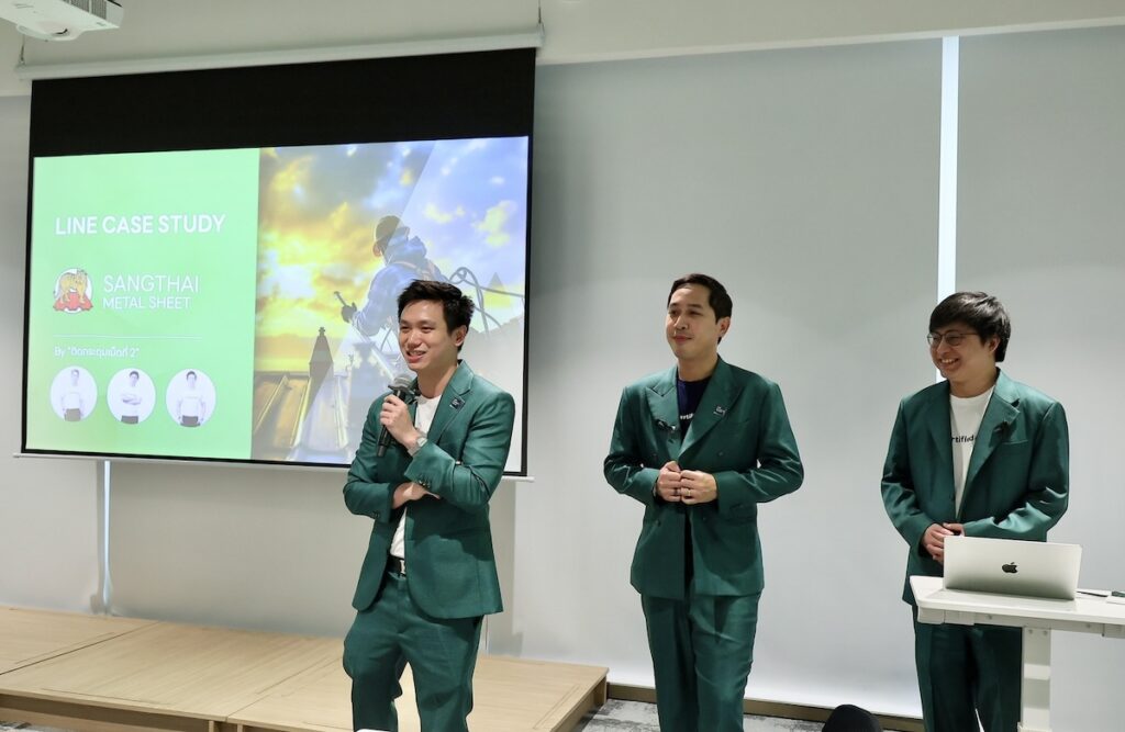 โค้ชง้วง-ชวลิต เดชะนรานนท์, โค้ชอ๋อง-ประภาส ศรีสุมะ และ โค้ชอาร์ท-ชนกานต์ ชินชัชวาล ที่ช่วยยกระดับการขายออนไลน์ให้ “แสงไทยเมทัลชีท” จากธุรกิจออฟไลน์กว่า 17 สาขาสู่สาขาที่ 18 บนโลกออนไลน์ โดยทีมโค้ชได้ช่วยวิเคราะห์ Customer Journey และปรับการใช้ LINE OA ของแบรนด์ให้ตอบโจทย์ลูกค้าในแต่ละช่วง ตั้งแต่ปรับคอนเทนต์ให้ตรงกลุ่มเป้าหมาย พัฒนาเทคนิคการตอบ ‘Auto-Reply’ และใช้ฟีเจอร์ ‘แชทแท็ก’ เพื่อเพิ่มความเร็วและคุณภาพการสื่อสารให้กับแบรนด์ จนทำให้อัตราการทักแชทจากลูกค้าสูงถึง 99.38% ก่อนนำข้อมูลกลุ่มลูกค้าจากการติดแท็กดังกล่าวไปเป็นกลุ่มเป้าหมายในการสื่อสารแบบ Personalized ให้ตรงกับลักษณะงานที่ลูกค้าแต่ละกลุ่มต้องการ เช่น บ้าน โรงงาน หรืออาคารรีโนเวต ฯลฯ ส่งผลให้ยอดขายรวมทุกสาขาเติบโตขึ้นกว่า 43% และสร้างรายได้รวมกว่า 20ล้านบาท กลายเป็นโมเดลการสร้างสาขาออนไลน์ด้วย LINE ที่เห็นผลและนำไปต่อยอดได้จริง