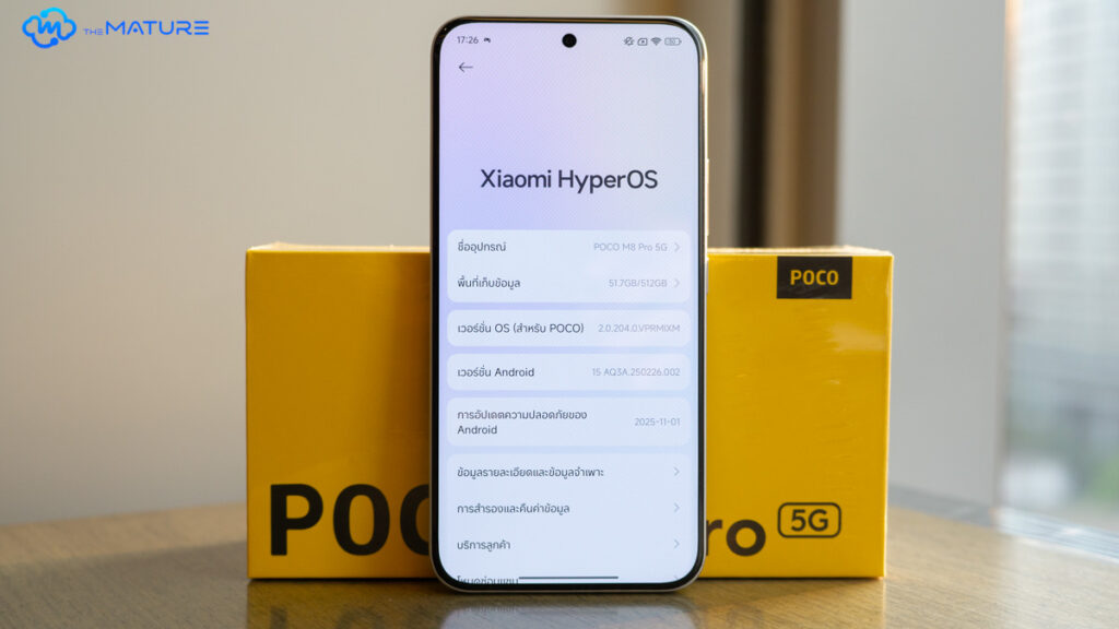 สำหรับการใช้งานในระยะยาว POCO M8 Pro มากับระบบปฏิบัติการ Xiaomi HyperOS 2.0 บน Android 16 ที่รองรับการทำงานของ Gemini ทำให้สามารถใช้งาน AI อย่าง Circle to Search ในการค้นหาข้อมูล หรือคำสั่งเสียงร่วมกับ Gemini ได้เต็มที่