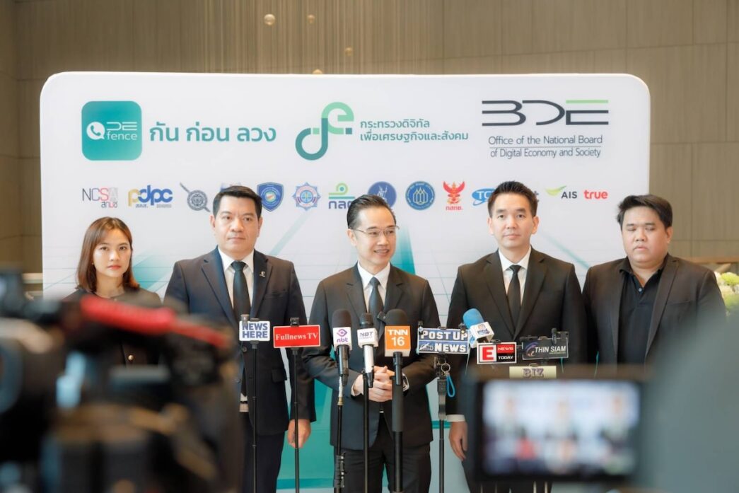 เวทางค์ พ่วงทรัพย์ เลขาธิการคณะกรรมการดิจิทัลเพื่อเศรษฐกิจและสังคมแห่งชาติ (BDE) และโฆษกกระทรวงดิจิทัลเพื่อเศรษฐกิจและสังคม (DE) ฝ่ายข้าราชการประจำ เป็นประธานงานแถลงข่าว “เปิดตัวแอปพลิเคชันป้องกันการโทรหลอกลวง” (DE-FENCE) ภายใต้โครงการพัฒนาแพลตฟอร์มป้องกันการโทรหลอกลวง โดยสำนักงานปลัดกระทรวงดิจิทัลเพื่อเศรษฐกิจและสังคม และสำนักงานคณะกรรมการดิจิทัลเพื่อเศรษฐกิจและสังคมแห่งชาติ บูรณาการความร่วมมือจากหน่วยงานที่เกี่ยวข้อง
