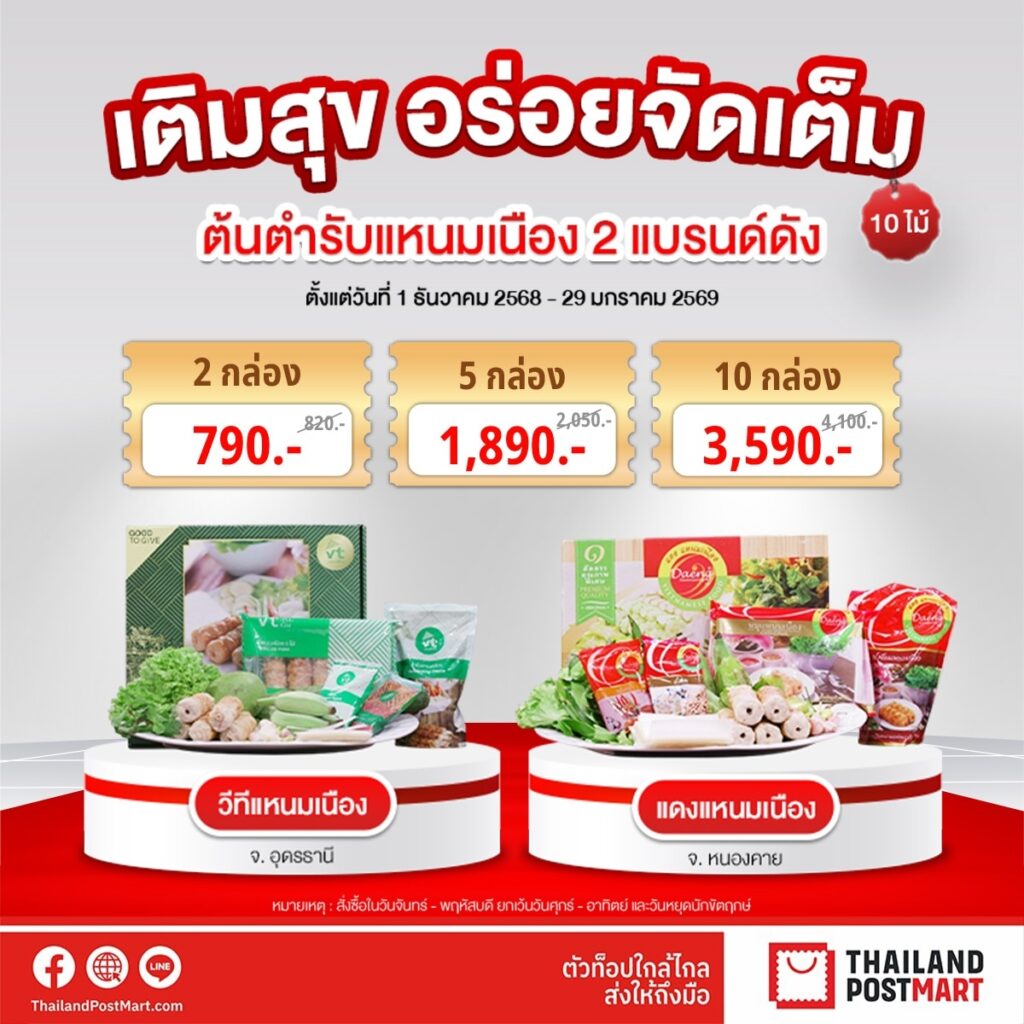 เริ่มต้นปีให้ อิ่มใจเอมใจไปกับการช้อป ไม่ว่าจะเป็นของอร่อยจากต้นตำรับ ของขวัญให้คนรู้ใจ หรือของฝากให้คนพิเศษด้วยดีลสุดคุ้มผ่าน ThailandPostMart ที่คัดสรรตัวท็อปทั่วไทยมาให้เลือกสรรครบครันในที่เดียว ช้อปง่ายแค่ปลายนิ้ว ส่งด่วน ทันใจถึงหน้าบ้าน พร้อมรับโปรโมชันพิเศษตลอดเดือนมกราคม 2569 ได้แล้ววันนี้ บนแอปพลิเคชัน-เฟซบุ๊ก ThailandPostMart หรือช้อปง่ายๆผ่านทางเว็บไซต์ https://www.thailandpostmart.com