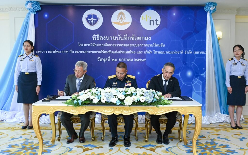 บริษัท โทรคมนาคมแห่งชาติ จำกัด (มหาชน) หรือ NT ลงนามบันทึกข้อตกลง (MOU)ร่วมกับ กองทัพอากาศ และสมาคมอากาศยานไร้คนขับแห่งประเทศไทย เพื่อขับเคลื่อนโครงการวิจัยและพัฒนาระบบจัดการจราจรของระบบอากาศยานไร้คนขับ (UAV Traffic Management : UTM) เพื่อมุ่งยกระดับ เทคโนโลยี นวัตกรรม และบุคลากรด้านความมั่นคงของประเทศ ตลอดจนส่งเสริมอุตสาหกรรมป้องกันประเทศ ณ ห้องรับรองบริพัตร กองบัญชาการกองทัพอากาศ กรุงเทพฯ