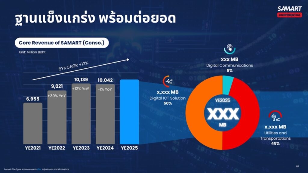 1.สายธุรกิจ Digital ICT Solutions (SAMTEL) ที่ตั้งเป้ารายได้ 6,500 ล้านบาท หรือเติบโตราว 20% ด้วยการรุกประมูลงานใหม่ 9,000 ล้านบาท เน้น AI, Cyber Security และระบบบริหารการเรียนการสอน (PowerSchool) มุ่งเน้นการพัฒนาและผลักดันโครงการขนาดใหญ่ผ่านการนำเทคโนโลยีขั้นสูงมาใช้ อาทิ โซลูชันด้านปัญญาประดิษฐ์ (AI) เทคโนโลยีด้านการป้องกันภัย และการให้บริการระบบหลักขององค์กรแบบระยะยาว ควบคู่การสร้างราย ได้ประจำ เพื่อเสริมความแข็งแกร่งและความมั่นคงทางธุรกิจ