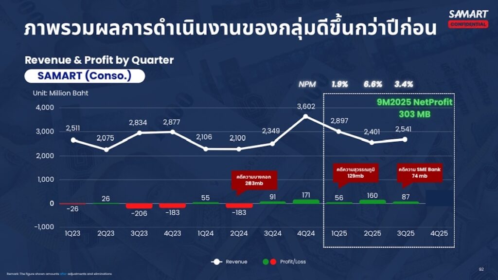 ‘ปี 2568 ถือเป็นปีที่ดีของสามารถ ทำยอดขายได้ดีขึ้น กำไรโตขึ้นเยอะ ส่วนปี 2569 เราตั้งเป้าเติบโต 30% ในเชิงยอดขาย น่าจะเห็น 14,000 ล้านบาทได้ ซึ่งส่วนหนึ่งเกิดจาก Backlog ที่มีอยู่แล้ว ซึ่งน่าจะมากกว่านั้นแต่จากสภาพเศรษฐกิจ สภาพบ้านเมือง ทำให้มีความล่าช้า แต่งานจะทยอยเข้ามาในต้นปีนี้ ซึ่งเราจะพยายามทำให้ดีกว่าทุกๆปี เน้นเรื่องการทำ M&A กับธุรกิจที่เกี่ยวข้องอย่างพลังงาน ไอที สนามบิน ปีนี้เราจะมูฟเร็ว’ วัฒน์ชัย วิไลลักษณ์ รองประธานกรรมการบริหาร ฝ่ายกลยุทธ์องค์กร บริษัท สามารถคอร์ปอเรชั่น จำกัด (มหาชน) กล่าว