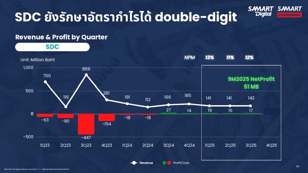 3. สายธุรกิจ Digital Communications (SDC) ตั้งเป้ารายได้ 900 ล้านบาท เติบโต 57% หลังพลิกฟื้นมีกำไรต่อเนื่อง 6 ไตรมาส เดินหน้ารุกตลาดวิทยุสื่อสารดิจิทัล (Digital Trunk Radio)โดยมีแนวโน้มเติบโตจากการรับรู้รายได้ของโครงข่าย Trunk ซึ่งเป็นรายได้ในรูปแบบ Air-time รวมถึงการส่งมอบอุปกรณ์เพิ่มเติมในช่วงไตรมาสแรกของปี ในกลุ่มการแพทย์ฉุกเฉินและหน่วยงานความมั่นคงชายแดน