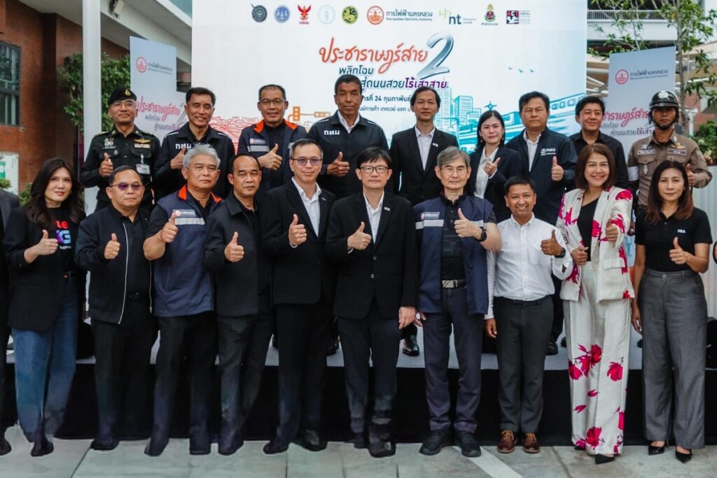 โดยมีรณชัย เรืองยุทธ (แถวบนที่ 5 จากซ้าย) รองผู้ว่าการปฏิบัติการระบบส่ง การไฟฟ้านครหลวง (MEA) เป็นประธานในพิธีพร้อมด้วยชัชชาติ สิทธิพันธุ์ (แถวบนที่ 4 จากซ้าย) ผู้ว่าราชการกรุงเทพมหานคร และระพีภัทิย์ เลิศวงศ์วีรชัย (แถวล่าง ซ้ายสุด) หัวหน้าฝ่ายรัฐกิจสัมพันธ์ บริษัท ทรู คอร์ปอเรชั่น จำกัด (มหาชน) ร่วมลงพื้นที่ดำเนินการจัดระเบียบสายสื่อสารและรื้อถอนเสาไฟฟ้า บริเวณถนนประชาราษฎร์สาย 2 ตั้งแต่คลองเปรมประชากรถึงแยกบางโพ ทั้ง 2 ฝั่งถนนรวมระยะทาง 2.80 กิโลเมตร เพื่อเพิ่มความปลอดภัยให้กับประชาชนพร้อมพลิกโฉมกรุงเทพมหานครสู่มหานครที่น่าอยู่ และมีทัศนียภาพที่สะอาด สวยงาม รองรับการเติบโตของกรุงเทพมหานครสู่เมืองอัจฉริยะที่ยั่งยืน