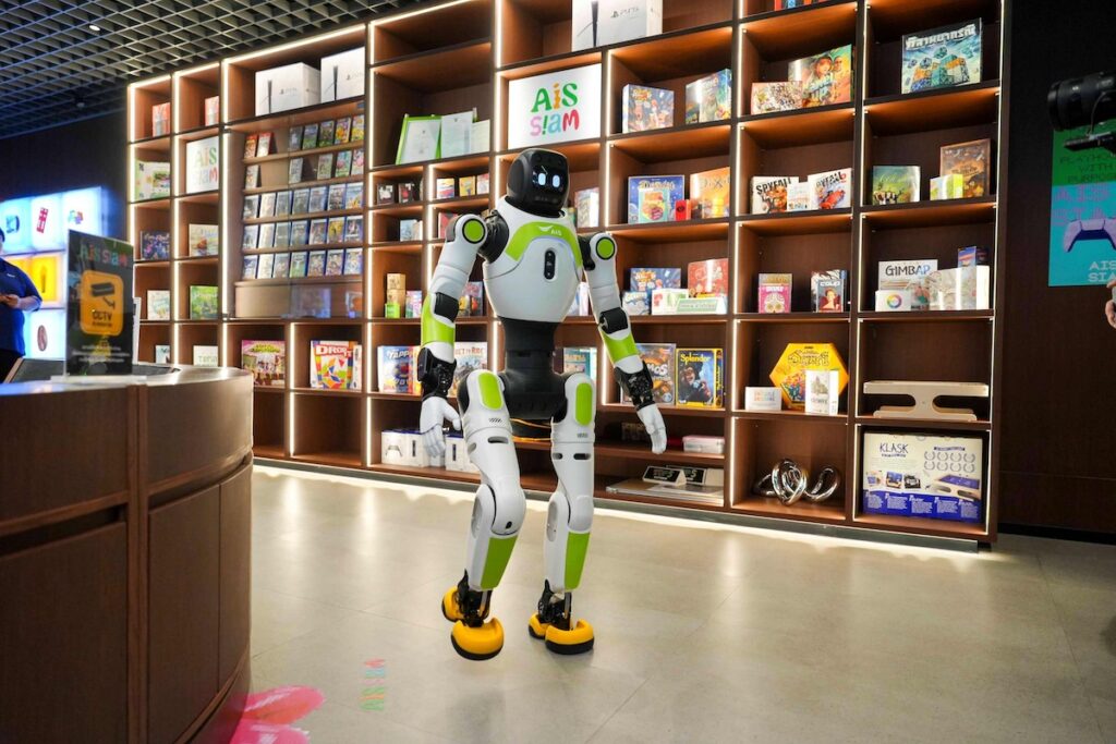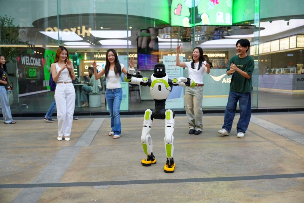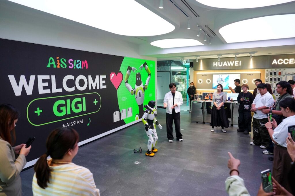 AIS SIAM คอมมูนิตี้สเปซของชาว Gen-C ใจกลางสยาม พื้นที่ของคนชอบเล่นจนได้เป็นตัวจริง ตอกย้ำการเป็นพื้นที่แห่งความคิดสร้างสรรค์และโชว์เคสนวัตกรรมดิจิทัล ต้อนรับ “น้องจีจี้” หุ่นยนต์บริการ AI อัจฉริยะ พนักงานน้องใหม่หัวใจโรบอท ที่สามารถสื่อสารภาษาไทยได้อย่างลื่นไหลและเป็นธรรมชาติ และสามารถให้ข้อมูลเบื้องต้นเกี่ยวกับสินค้าและบริการต่างๆ ของ AIS SIAM