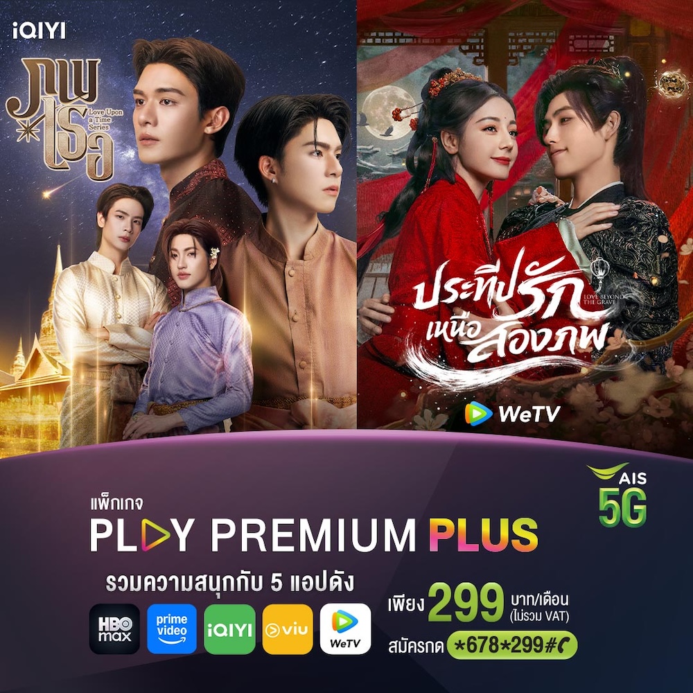 สำหรับลูกค้าที่เลือกพักผ่อนอยู่บ้านในช่วงสงกรานต์ AIS ชวนเปิดประสบการณ์ความบันเทิงแบบจัดเต็มผ่าน AIS PLAY กับแพ็กเกจคอนเทนต์พรีเมียม PLAY PREMIUM PLUS ที่รวมคอนเทนต์มากมายจากแพลตฟอร์มชั้นนำไว้ในแพ็กเดียว ทั้งซีรีส์ ภาพยนตร์ รายการวาไรตี้ และอนิเมะจาก HBO Max, Prime Video, iQIYI, Viu และ WeTV ในราคาเพียง 299 บาทต่อเดือน ให้สนุกได้เต็มอิ่ม ดูได้จุใจตลอดวันหยุดยาว