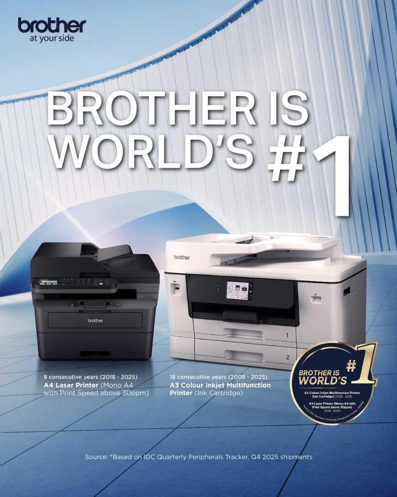 โดยผลการจัดอันดับล่าสุดระบุว่า บราเดอร์ ครองอันดับ 1 ของโลกในกลุ่มเครื่องพิมพ์มัลติฟังก์ชันอิงค์เจ็ทสีขนาด A3 (A3 Color Inkjet MFP) ต่อเนื่องยาวนาน 18 ปี ระหว่างปี 2551-2568 ประเภท Ink Cartridge และครองอันดับ 1 ของโลกในกลุ่มเครื่องพิมพ์เลเซอร์ขนาด A4 (A4 Laser Printer) ต่อเนื่อง 8 ปี ระหว่างปี 2561-2568 ประเภทขาวดำ ความเร็วการพิมพ์มากกว่า 30 แผ่นต่อนาที นับเป็นบทพิสูจน์สำคัญที่สะท้อนความแข็งแกร่งของแบรนด์ในอุตสาหกรรมงานพิมพ์ระดับโลก