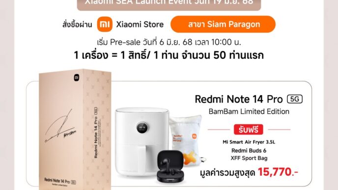 Gadgets Redmi Note 14 Pro 5G BamBam Limited Edition สั่งซื้อล่วงหน้าในระหว่างวันที่ 6-11 มิ.ย. 2568 รับโปรโมชันพิเศษและสิทธิ์เข้าร่วมงาน Xiaomi SEA Launch Event byKhun JarinJune 5, 2025